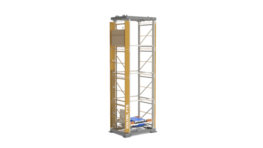 叉车将托盘货物放至入库口输送线上,并检查是否按规范要求码放正确,若无问题,按入库按钮,输送线搬运货物同屋外形及重量检测,待外形、称重、扫码检测无误后,继续搬运进入库内,提升平台上升,将货物提升到相应的货架层高,提升平台轨道与货架轨道对齐,货物通过输送线送 出提升机,再由智能四向车搬运运送到货架位上,完成入库操作而后提升平台回到底层等待指令,满足整体入库效率 20 托/小时。