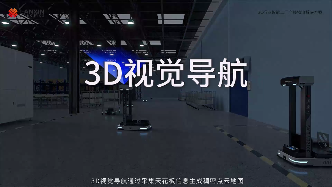 【更稳定】通过机器人所搭载的3D定位导航相机+智能算法采集天花板信息并生成稠密点云地图,为机器人在复杂环境运行提供更稳定的导航。车间顶部环境稳定,机器人不受地面动态人、车、物流的干扰。