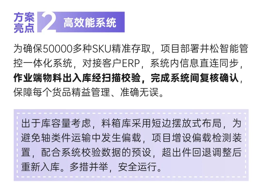 为化解以上难题,企业联手整厂智能方案提供商井松智能,针对5W多种SKU物料的智能化存储、拣选、流转与信息化管理需求,投入整套智能软硬件设备系统。井松智能采用大托盘、中型仓储笼、小型料箱集中立体存储的设计,结合多设备与新功能的联用,促使库容量提升数倍,实现数万种零部组件的自动存储与收发,大大提高齐套拣选与厂内物流效率。