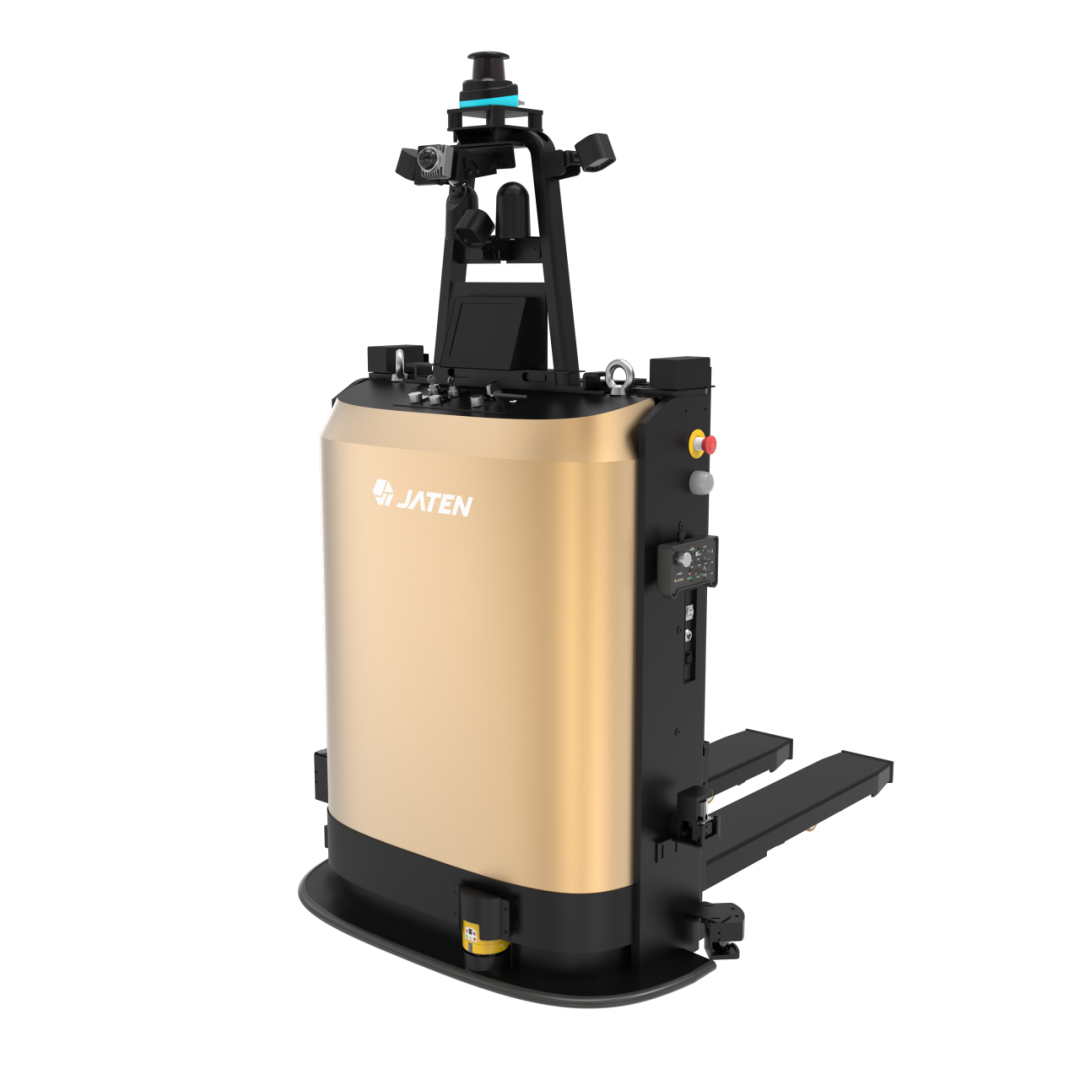 产品优势:嘉腾自主研发控制板,采用复合导航技术,尺寸紧凑,运行灵活。可前进、后退、原地旋转,支持车货同转,车转货不转,最大举升高度60mm,可应用于仓储、汽车、食品、药品、物流等运送物料重量在1500kg及以下场景。