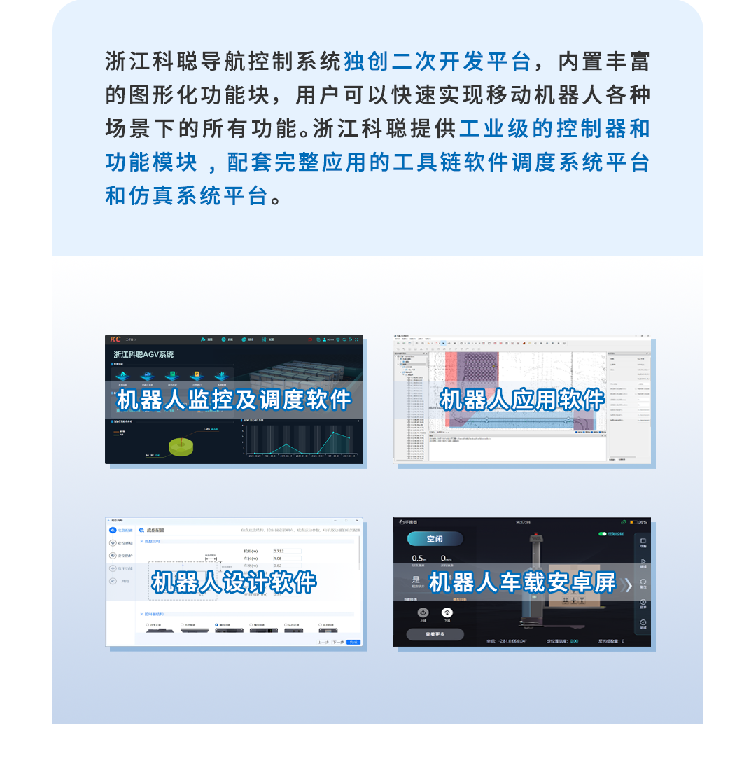 科聪是移动机器人控制系统行业领军者,同时也是国产标准化移动机器人控制系统先驱者,总部位于浙江杭州。科聪在移动机器人精准定位、动态路径规划、精确轨迹导航、多驱运动控制、自主可编程开发等方面处于全球领先水平,为千行百业提供可靠、稳定、灵活、易用的技术、产品、服务和整体解决方案。