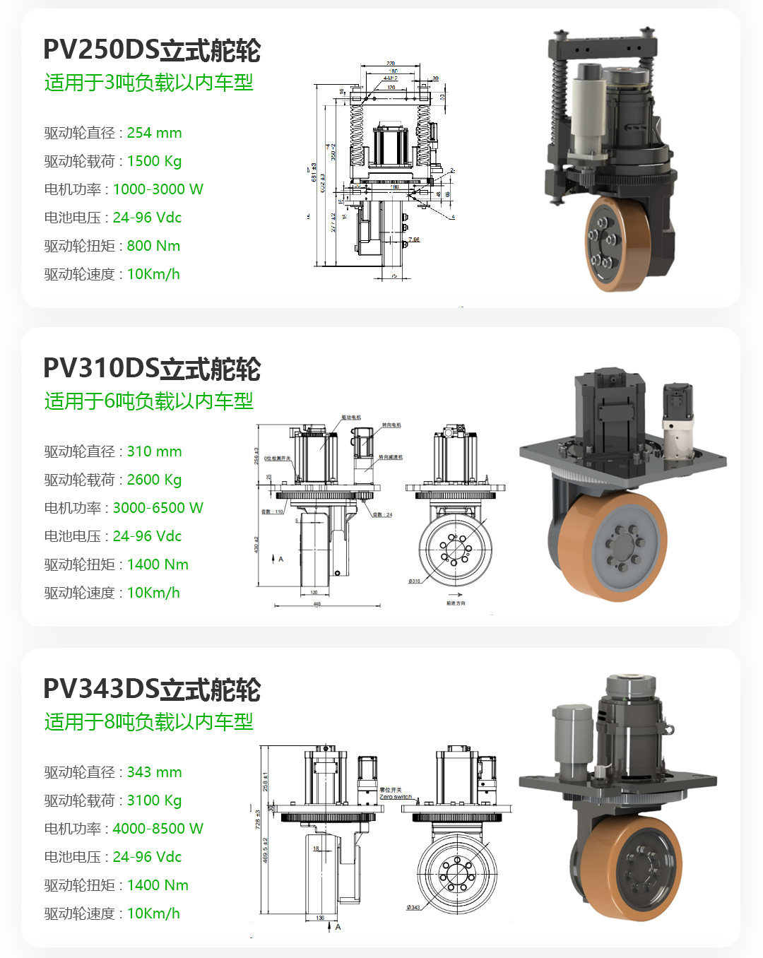 AGV无人叉车/电动叉车的立式舵轮选型指南