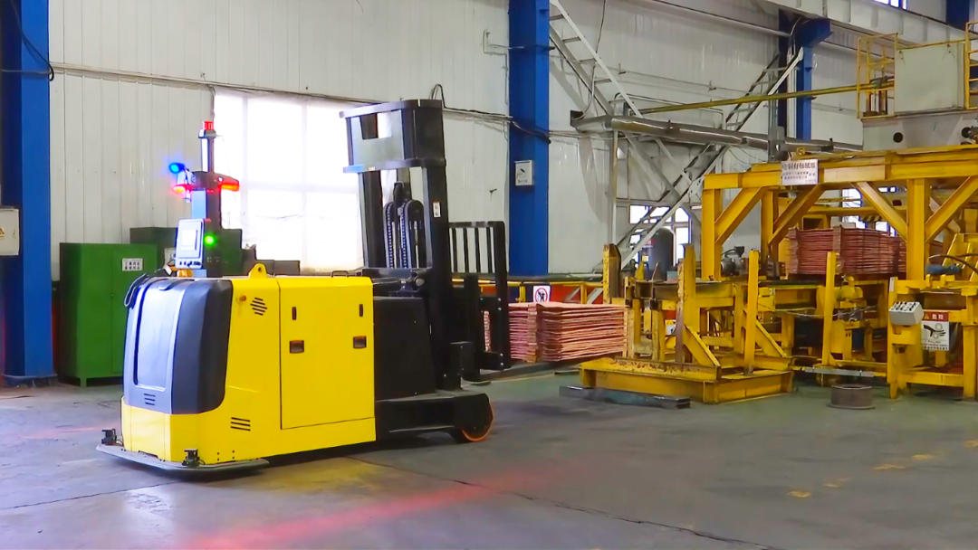 听,这是什么声音?“这江山我起笔 民族血脉有几万里……”这是转运电铜AGV小车运行时播放的提示音乐,告诉员工它正在运行,要注意安全。小车采用的是基于激光雷达导航传感器的自动驾驶控制系统,通过报警、减速、停止三个阶段进行整车防护,安全又省力,可有效避免安全事故的发生。