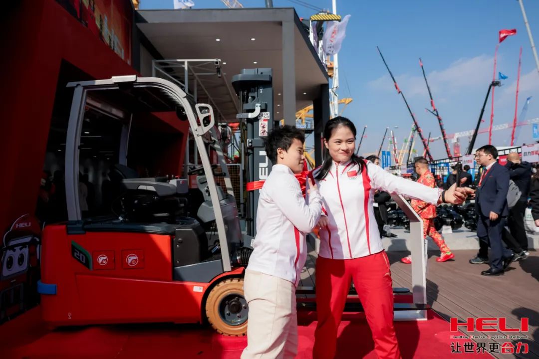 为顺应行业高端化、智能化、绿色化发展趋势,满足不断变化的市场需求,合力在本次展会发布自主研发的重磅创新产品G3系列1.3-2t前轮双驱三支点锂电叉车,助力行业绿色高效发展。现场邀请到中国举重奥运冠军侯志慧、罗诗芳,中国工程机械工业协会荣誉会长祁俊、工业车辆分会秘书长张洁,安徽叉车集团党委委员、安徽合力股份公司党委副书记、总经理周峻等重磅嘉宾参加此次新品发布会并为新品进行揭幕。