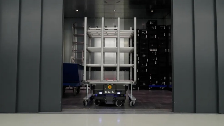 在最新的 Blum-Novotest 的案例中,MiR250 AMR 车队发挥了重要作用。该车队配备了货架搬运装置顶部模块、顶升装置和卷帘门连接,能够运输适用于传统小型货物搬运装置的定制移动货架以及定制的半欧标托盘推车,完成了 90% 的内部物流流程,大大提升了物流效率。截至目前,已经节省了超过 1200 公里的运输行程,同时缩短了电梯前和电梯内的等待时间,规范了物流流程,降低了错误发生率。