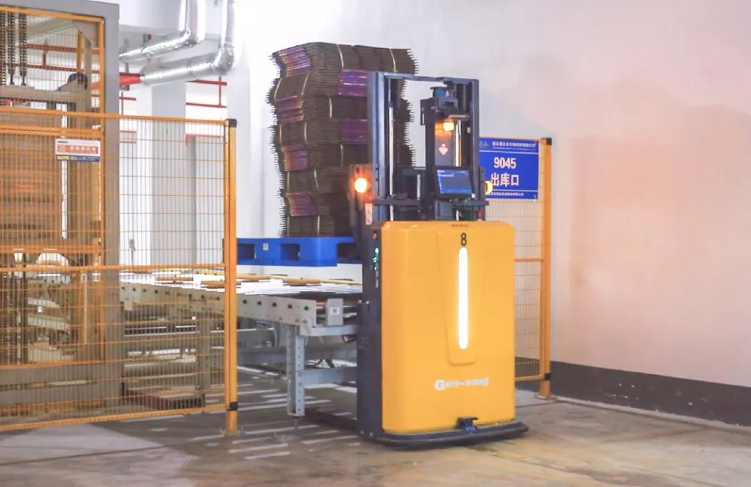 井松智能在五大区间设有互通连廊,通过多台输送线、提升机与RGV的投入,轻松满足产线3分钟/托货的快速入库,实现产线库区跨楼层一站式流转。针对产线叫料需求,各车间部署多台FMR,以支持包材与空托在多叫料点间的搬运与补给。