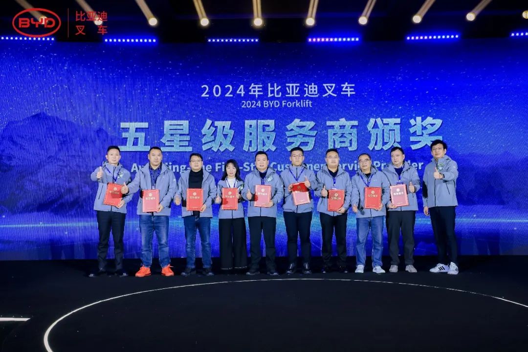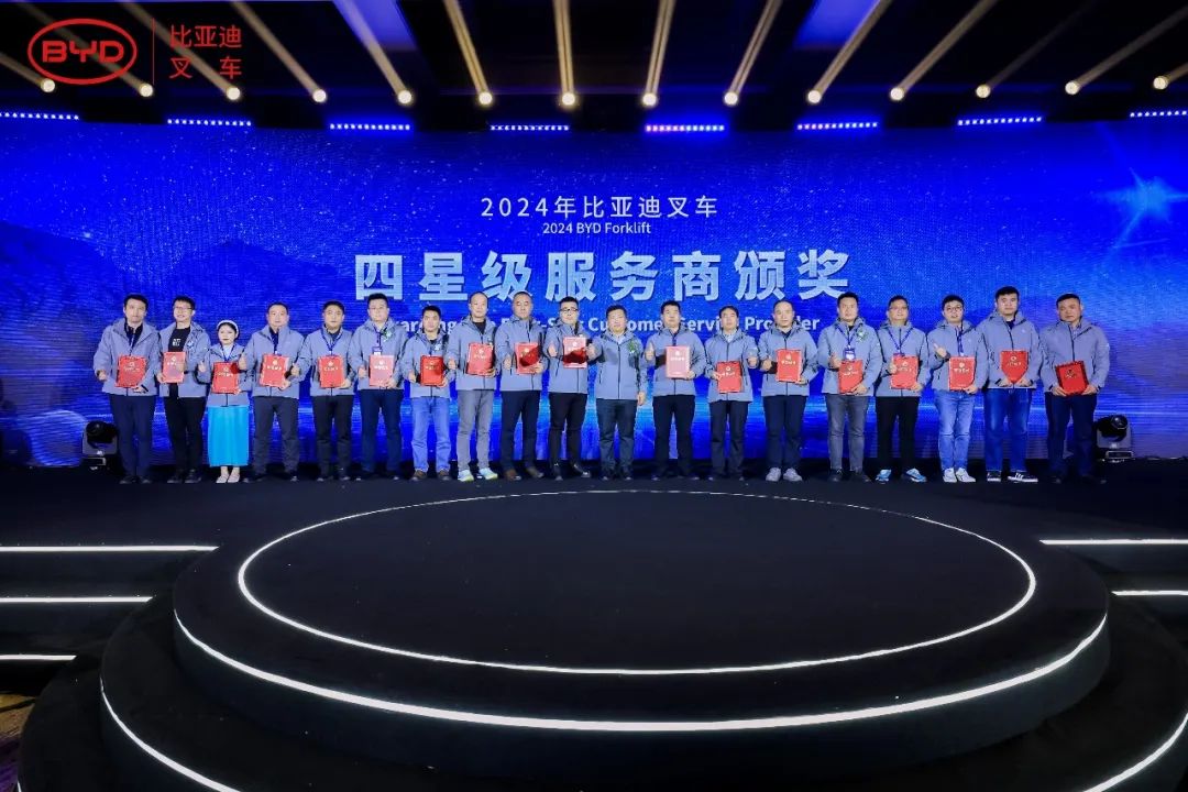 会上,比亚迪叉车特针对在售后服务中,高效迅速、规范专业的五星及四星级服务商,分别给予了奖励。