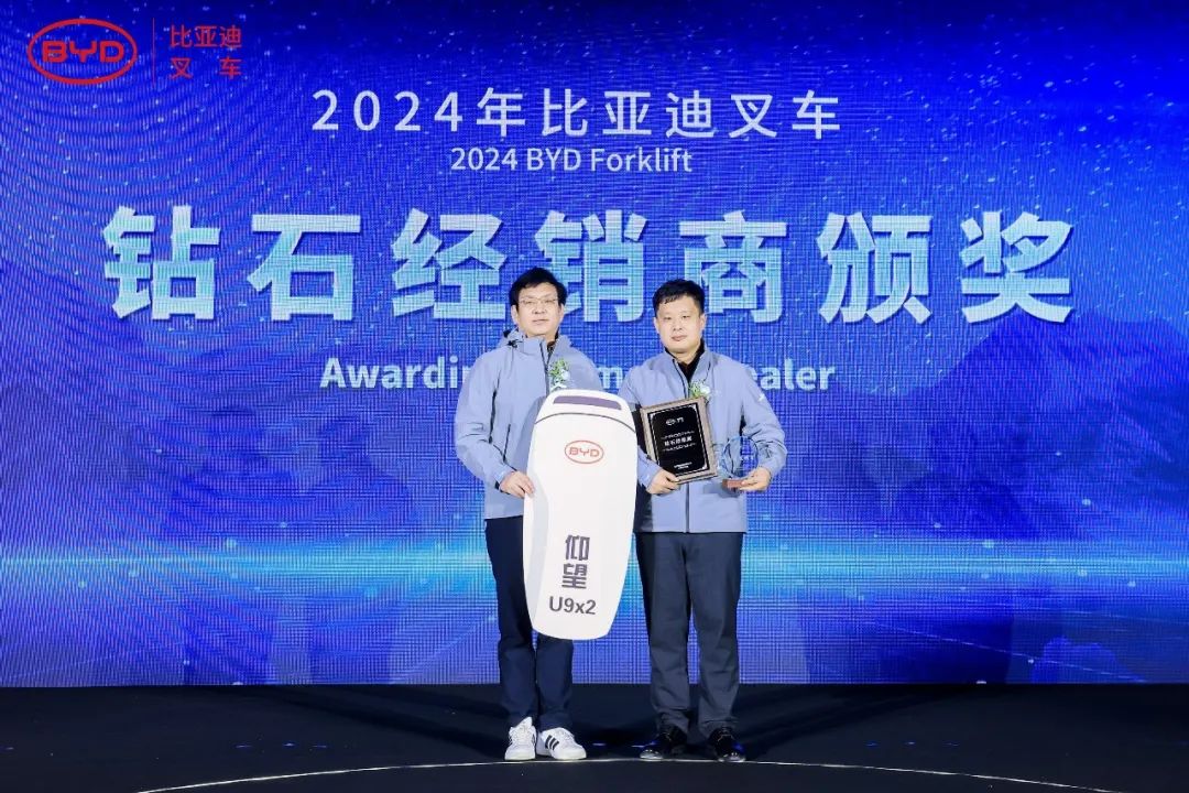 不辞青山、相随与共,在2024年比亚迪叉车发展的道路上,我们得益于自身的不懈努力,也离不开伙伴们齐心协力克万难,为新能源叉车行业的发展提供了强有力的支撑,此次大会比亚迪叉车特授予广州佛朗斯股份有限公司、武汉世恒机械设备有限公司,山东景林绿色生态发展有限公司战略合作伙伴奖。