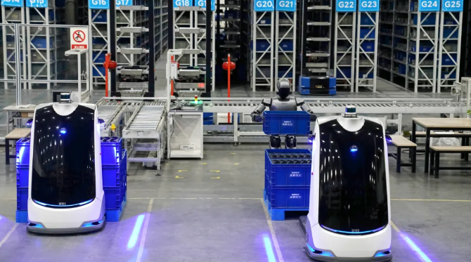 UQI优奇无人叉车与人形机器人协作实现物流无人化 助力领克汽车工厂智能化升级