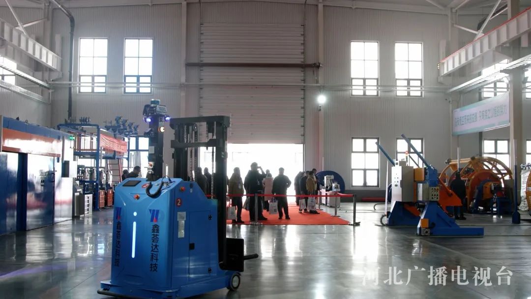 缆芯高导(河北)科技有限公司总经理 赵江波:“它的优势就是省人工、效率高。我们整体车间缆心高导整体拉丝、绞丝设备总共20余套,同时配有10套AGV搬运小车。我们想打造一个智能制造共享工厂。我们想着是利用先进化的设备批量化生产,节约更多的成本,然后把最优质的产品带给电线电缆企业。(目前)已经完成一期智能制造共享工厂的建设,二期建设正在加紧施工。”