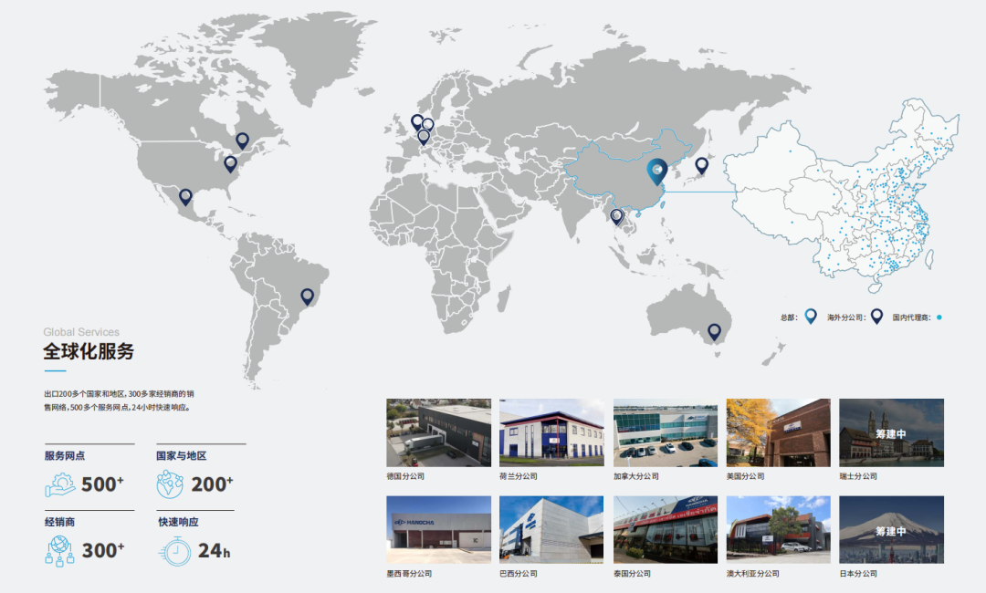 在深耕全球业务的同时,杭叉智能已构建起覆盖欧美、东南亚等主要市场的服务网络,通过本土化代理商体系与区域技术中心,实现“快速响应、精准服务”。不断提升品牌知名度,提升本土渗透率,为提供高品质、高效率的本地服务奠定了坚实的基础。