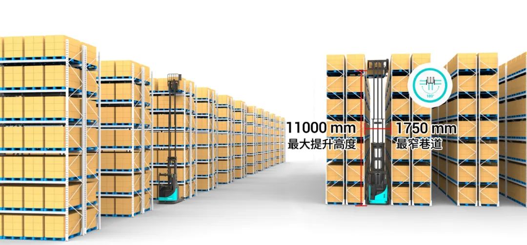 传统叉车需预留3米以上通道,仓库30%面积被“吃掉”。劢微无人叉车仅需1.75米巷道,货架层高直抵11米,空间利用率大幅飙升。