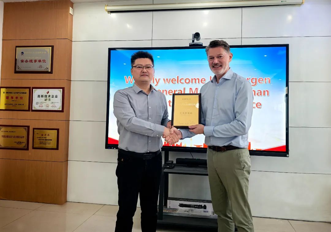 随后的战略研讨会上,袁正介绍了合力智能物流发展战略蓝图,双方并围绕NDC技术与智能物流装备在新一轮产业智能升级的创新应用、市场协同拓展及商务合作模式升级展开深度对话。科尔摩根团队表示将持续积极应对市场需求和技术变革,打造更适合中国伙伴以及合力深耕的细分行业产品与技术应用,提高产品的兼容性和开放性,赋能合力增强全球市场竞争力。现场合力授予科尔摩根-自主移动解决方案“优秀供应商”。