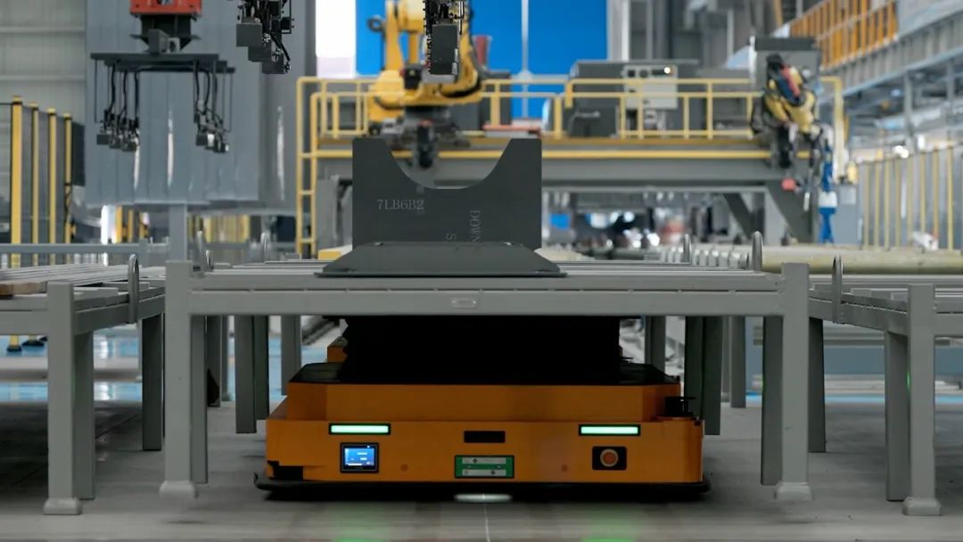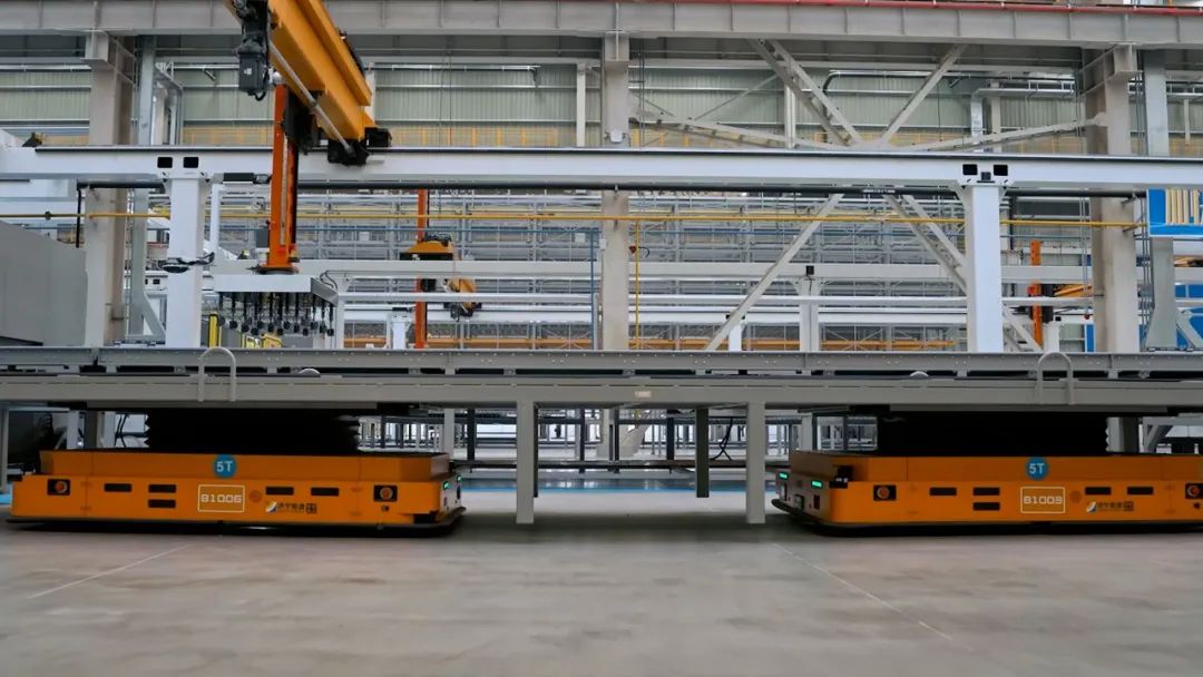 济宁新能船业船舶基地在造船行业率先应用AMR自动配送板材,于2024年3月投入57台重载AMR,实现了生产运输过程的数字化和智能化,配送准时率达98%,实现联合车间10余条产线从型材、板材切割下线,打磨工序、小组立焊接、外协料、外发料配送等的全场景工艺流程配送。