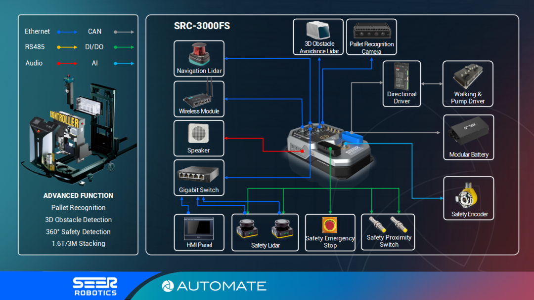 地面式搬运智能叉车 SPT-1000 和薄体前移式智能叉车 SSR-1400 再次线下亮相。3 月展会首秀后,凭借专利设计与本地化适配能力收获行业高度评价,此次在 AUTOMATE 展台延续吸睛表现。旋转顶升机器人 SJV-SW600 作为用户口碑最佳的小负载机型,以灵活性能和高安全性成为展示亮点。