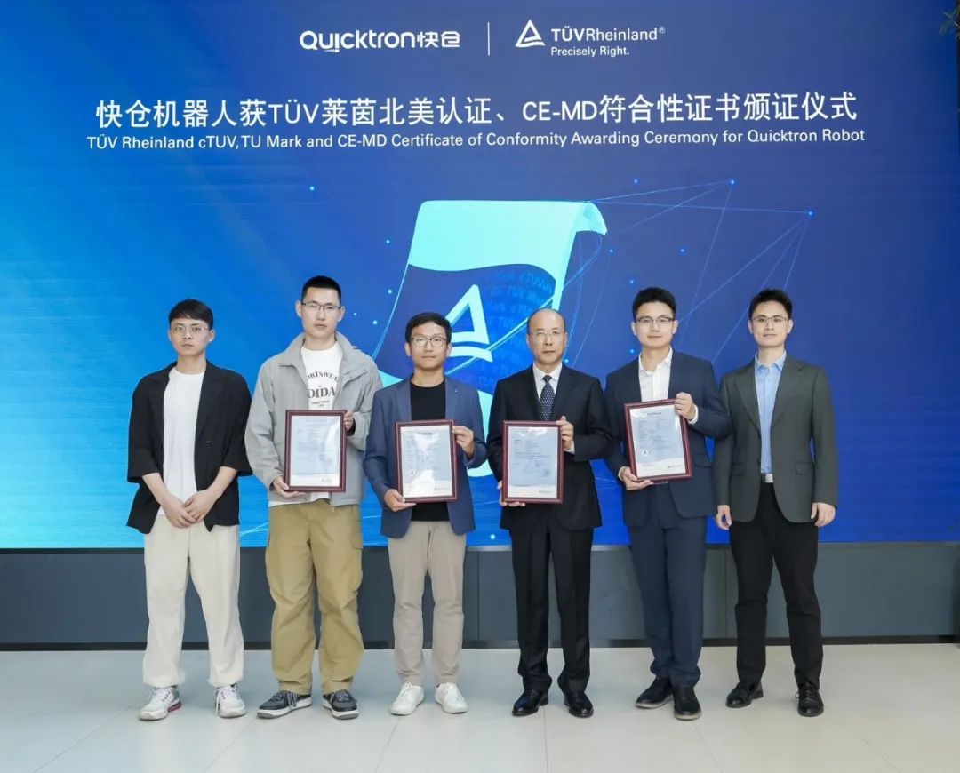 徐澍表示:“TÜV莱茵与快仓合作已有近十年,快仓M系列、C系列等多款机器人产品通过了TÜV莱茵北美认证及CE指令符合性测试,涵盖机械安全、电气安全、电磁兼容性(EMC)等方面,快仓QuickPick解决方案还通过了TÜV莱茵系统场景型CE指令符合性测试,是业内为数不多对软硬件结合的机器人解决方案进行场景化符合性测试的项目,为其全球化布局提供了重要支持。我们期待未来双方继续深化合作,共同探索机器人技术的创新突破,推动行业进步,为全球客户提供更多高附加值的服务。”