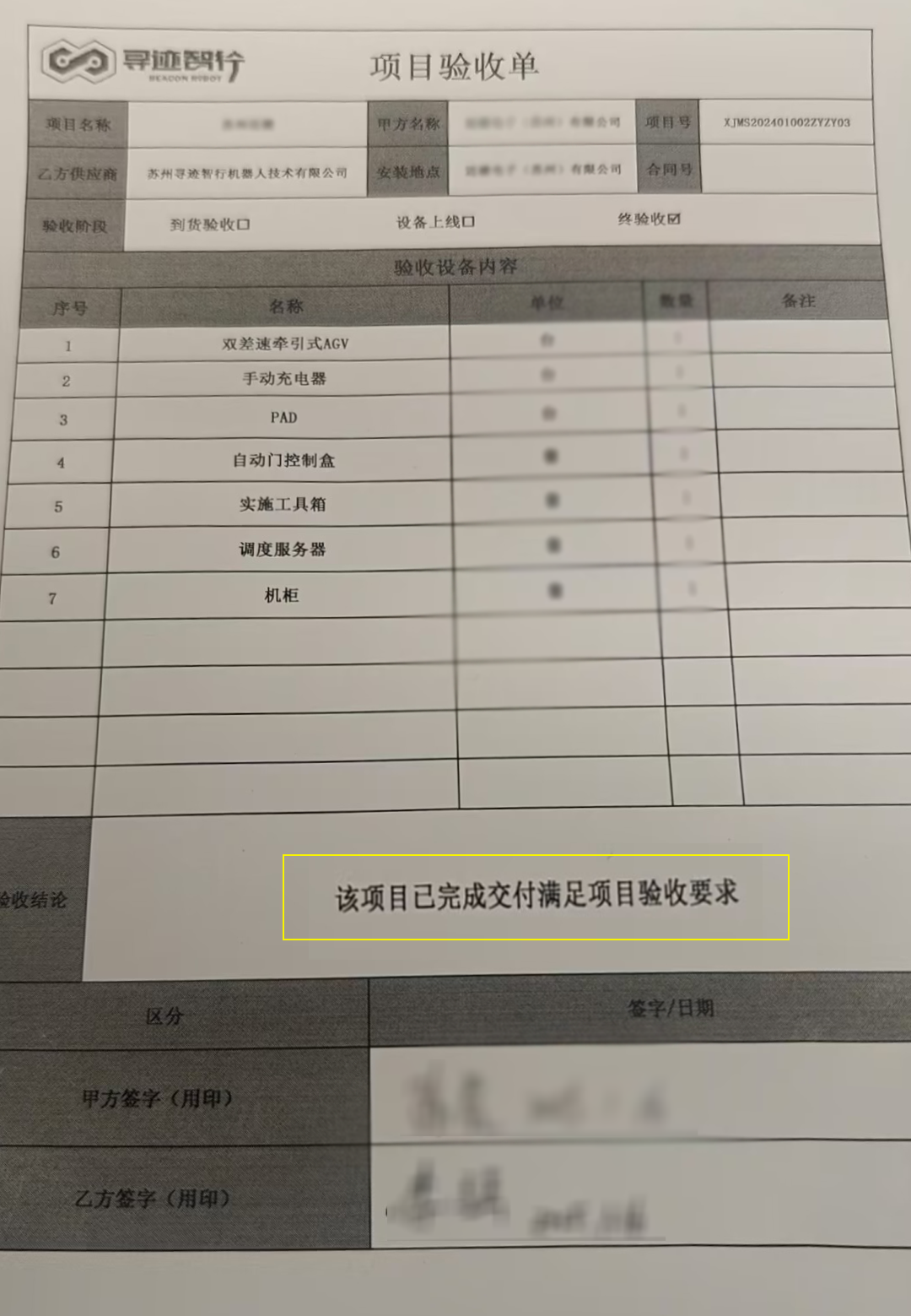 寻迹智行自研牵引式AMR通过客户验收顺利交付