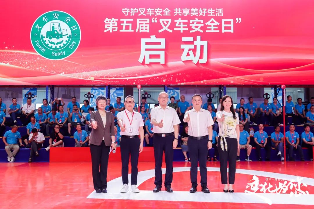 千里之外的湖北,第五届 “叉车安全日”中力湖北分会场与 629 年度创新大会激情碰撞,活动现场化身为安全理念传播的超级阵地!中国工程机械工业协会秘书长吴培国,老河口市委副书记、市长郭章新、中国工程机械工业协会工业车辆分会秘书长张洁、全国工业车辆标准化技术委员会秘书长赵春晖、众多知名媒体、行业伙伴们共同出席启动仪式。