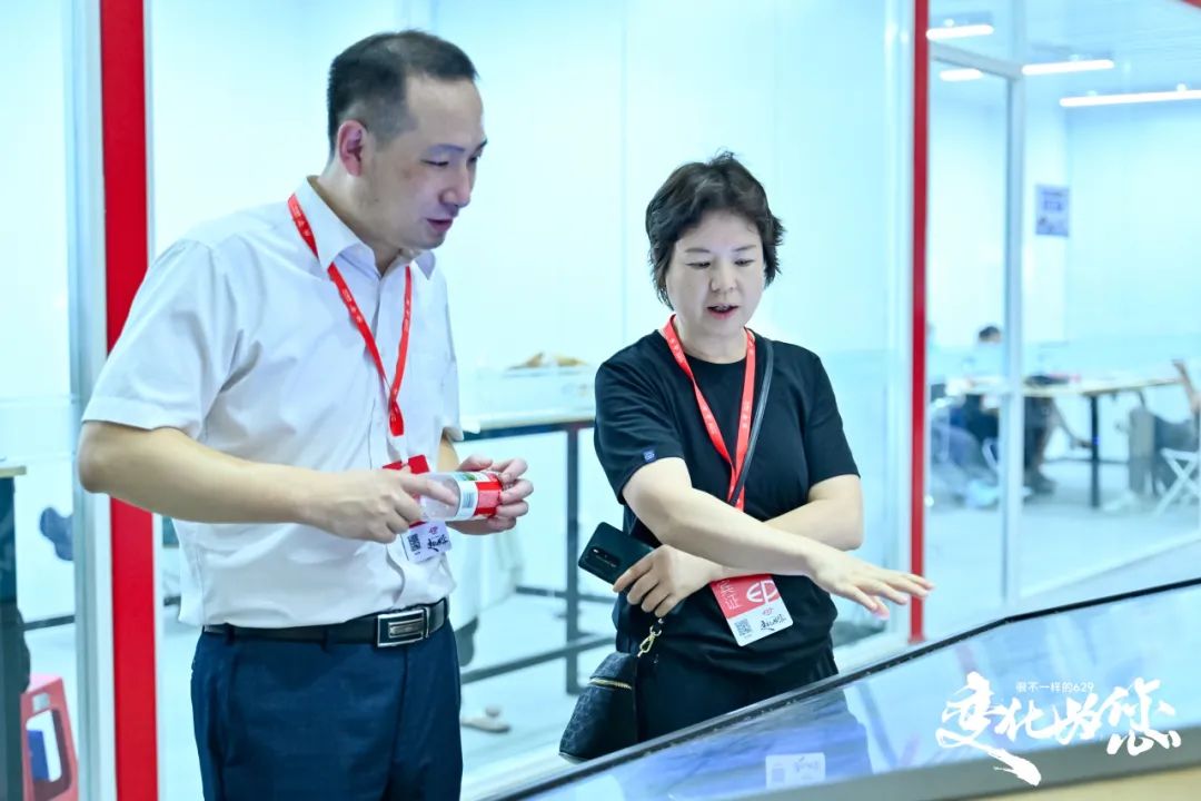 现场随处可见具身拣料机器人、具身转运机器人为广大嘉宾提供饮品、样册等物品,行云流水般完成饮料取放、精准送货,将科幻场景变为现实,引得现场嘉宾惊叹连连。