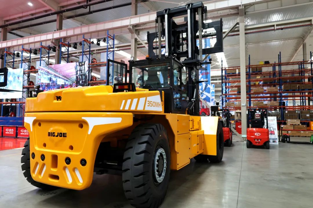 35吨高压重载锂电叉车采用行业先进的600V高压平台,结合自主研发的整机驱动方案和集成管理控制系统,实现了载重能力突破,智能液压控制系统精准操控;相比传统燃油叉车极大降低能耗和碳减排,为大型物流、重工制造等行业提供绿色高效的重载新解决方案。