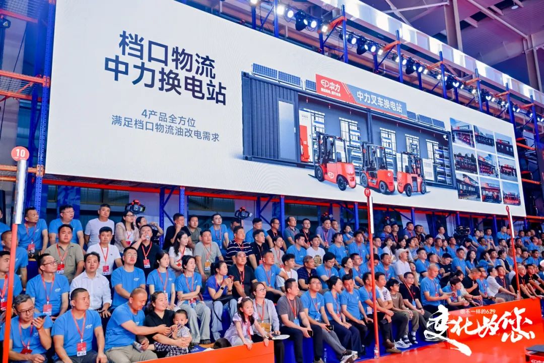 本次629现场,中力换电站解决方案再升级,带来更多模式换电叉车,2分钟侧拉换电更快更简单,搭配560Ah大容量电池破解电动叉车续航焦虑;性能全面提升,满足高强度重工况使用;换电站智能监控系统实时优化电池调配,让能源利用效率再提升。