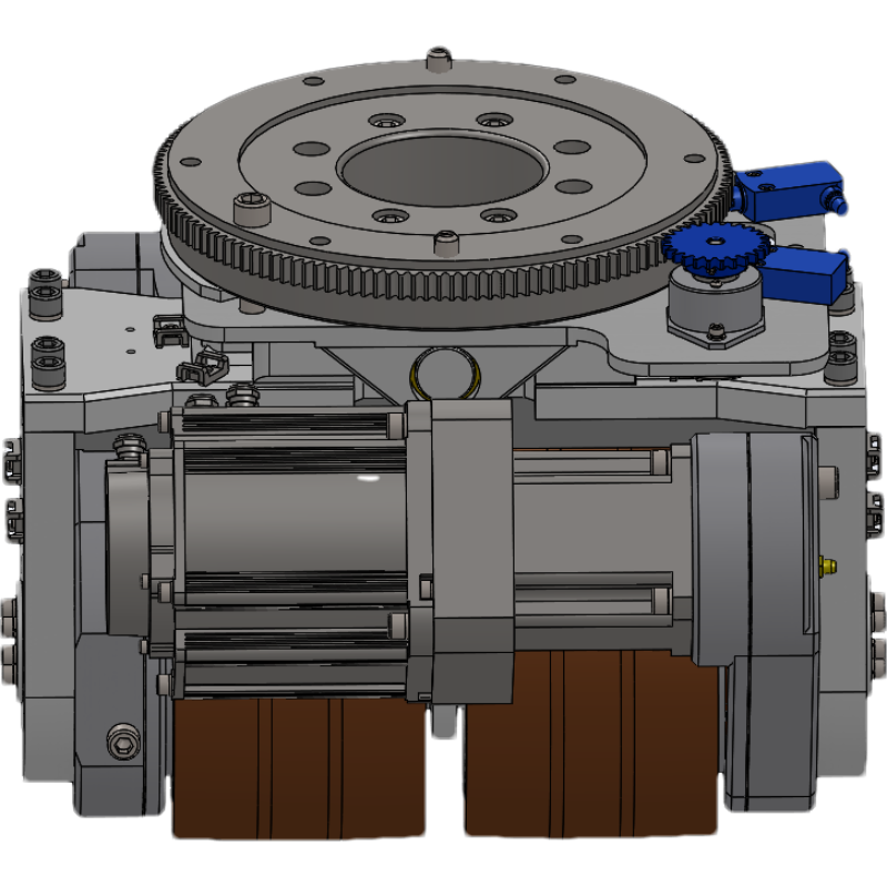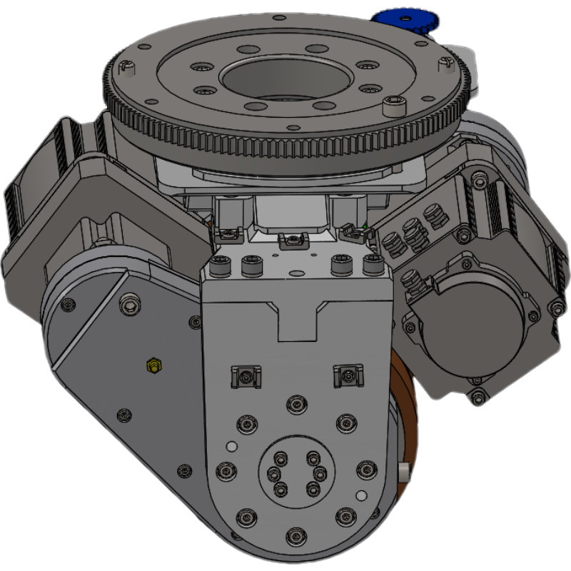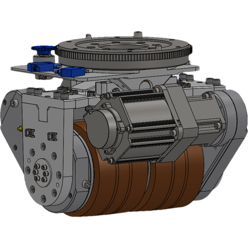 但这款 V 形结构舵轮,直接给 AGV 加了 “踮脚技能”:减速电机往上抬了个巧妙角度,像穿了双带坡度的 “登山靴”,核心部件离地面远远的。减速箱外壳还藏了个 “水平扁口” 设计,不用螺丝固定也能稳稳倾斜,既避免主轴打孔变 “脆弱”,又悄悄缩小转弯半径。现在 AGV 过个几厘米高的门槛,就像你在家跨拖鞋一样轻松,再也不用停着等人工搬货啦~