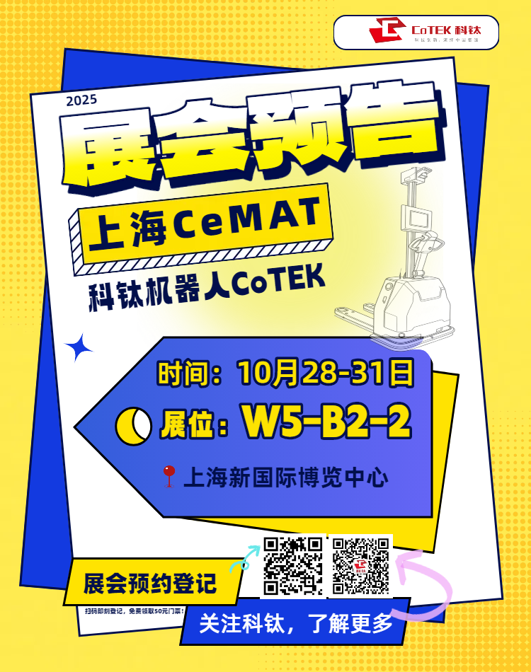 全球物流人的目光已锁定上海!作为亚洲顶级物流技术盛会,CeMAT ASIA 2025将于10月28-31日在上海新国际博览中心盛大启幕,深耕物流机器人领域的科钛机器人,本次展会将携重磅双版本CP15机器人亮相W5馆B2-2展位,其中极简版CP15机器人专为解决中小企业自动化痛点而来!