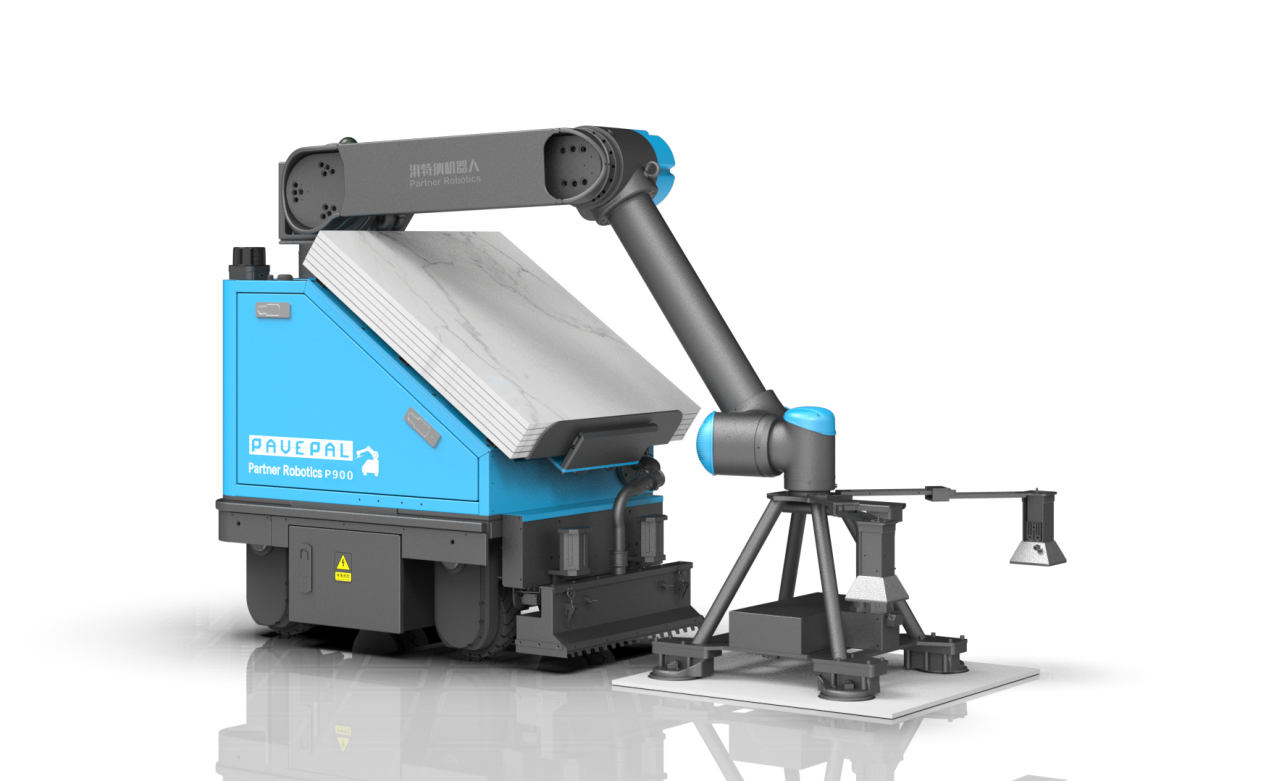 其中,P900 地砖铺设机器人可以被视作 湃特纳的“明星产品”。根据公司及权威媒体的技术介绍,这款机器人采用 SLAM 导航技术,集成全局找平与举升系统、精确定位与砂浆布置功能,并搭载振动系统以提高瓷砖与基层的贴合度。 P900 适用于室内大面积地面铺装,能够处理从 450×450 mm 至 900×900 mm 的多种规格瓷砖,单块重量可达 20 千克,总载重能力高达约 950 千克,续航时间超过 6 小时,可实现每小时约 18 平方米的铺设能力,平均每 40 秒完成一块瓷砖铺贴。