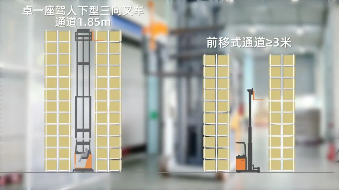 客户有频繁的出入库需求,前移式叉车需要经过多次转向才能完成存取货物、对接库位操作,耗费时间长。