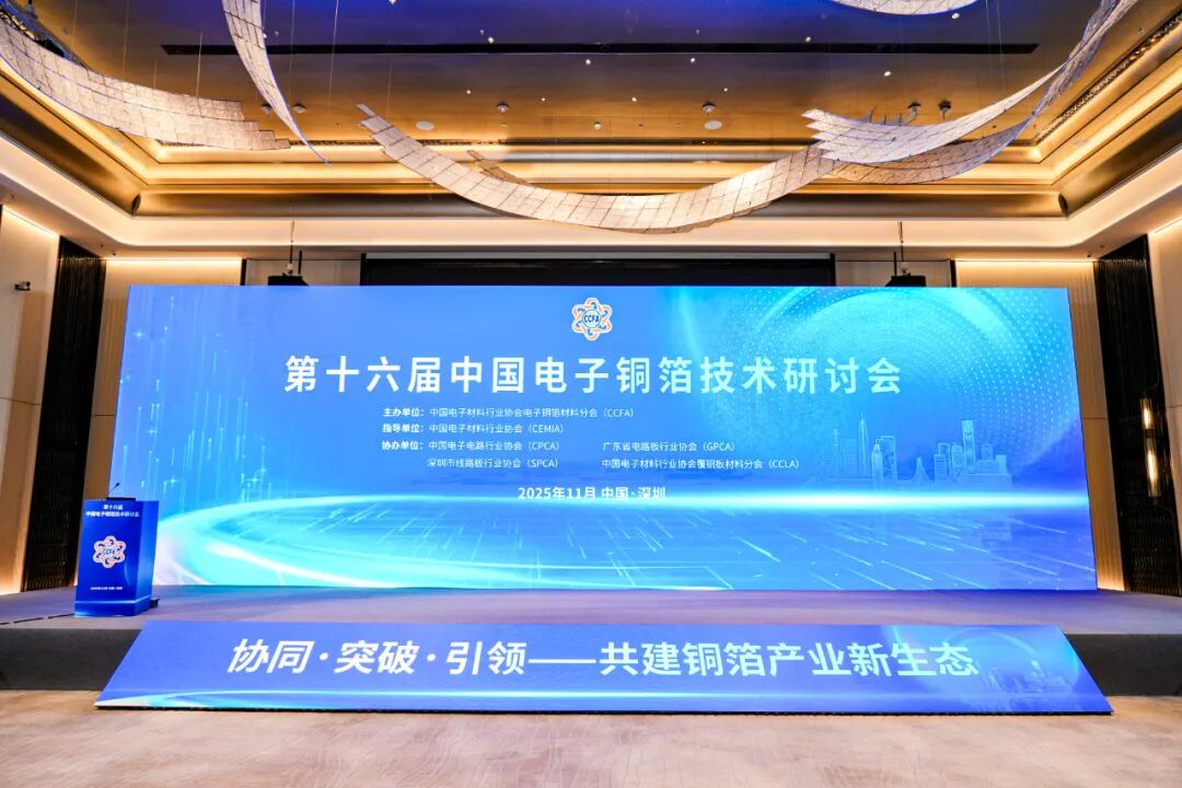 11月20日,“第十六届中国电子铜箔技术研讨会”在深圳市成功召开!本届研讨会由中国电子材料行业协会电子铜箔材料分会主办。来自铜箔行业生产厂家、配套装备制造厂家、锂电池行业、覆铜板行业、PCB行业、相关科研院校等单位的领导、专家及技术代表出席大会。
