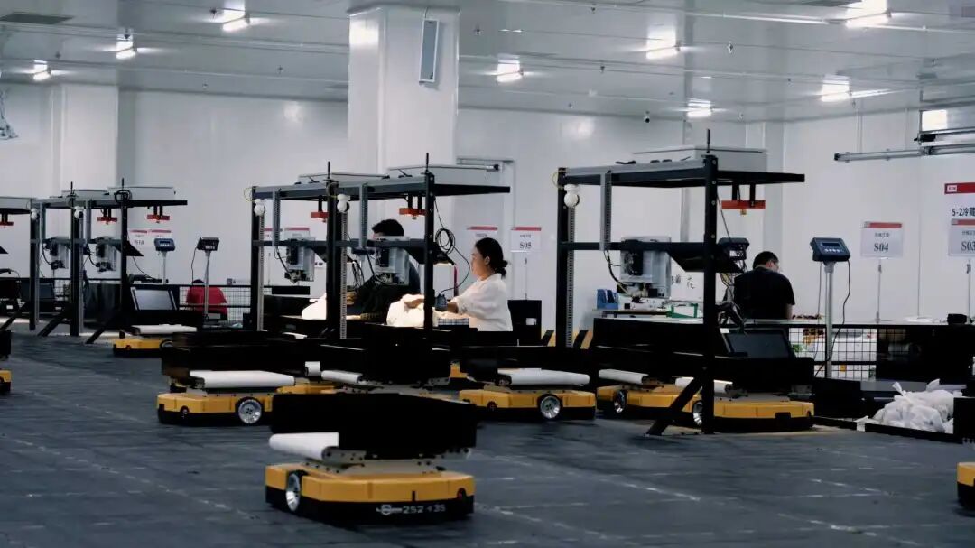 设计方案在30台小黄人机器人与210个分拣格口的基础配置上,针对蔬菜易挤扁怕磕碰的特点,在分拣环节采用了大车皮带与滑槽格口对接的特殊设计。皮带输送时保持匀速缓冲,使放置其上的蔬菜通过滑槽缓冲软着陆,避免磕碰,充分保障菜品完整性,做到运输时如“闪电”,落筐时如“鸿毛”。