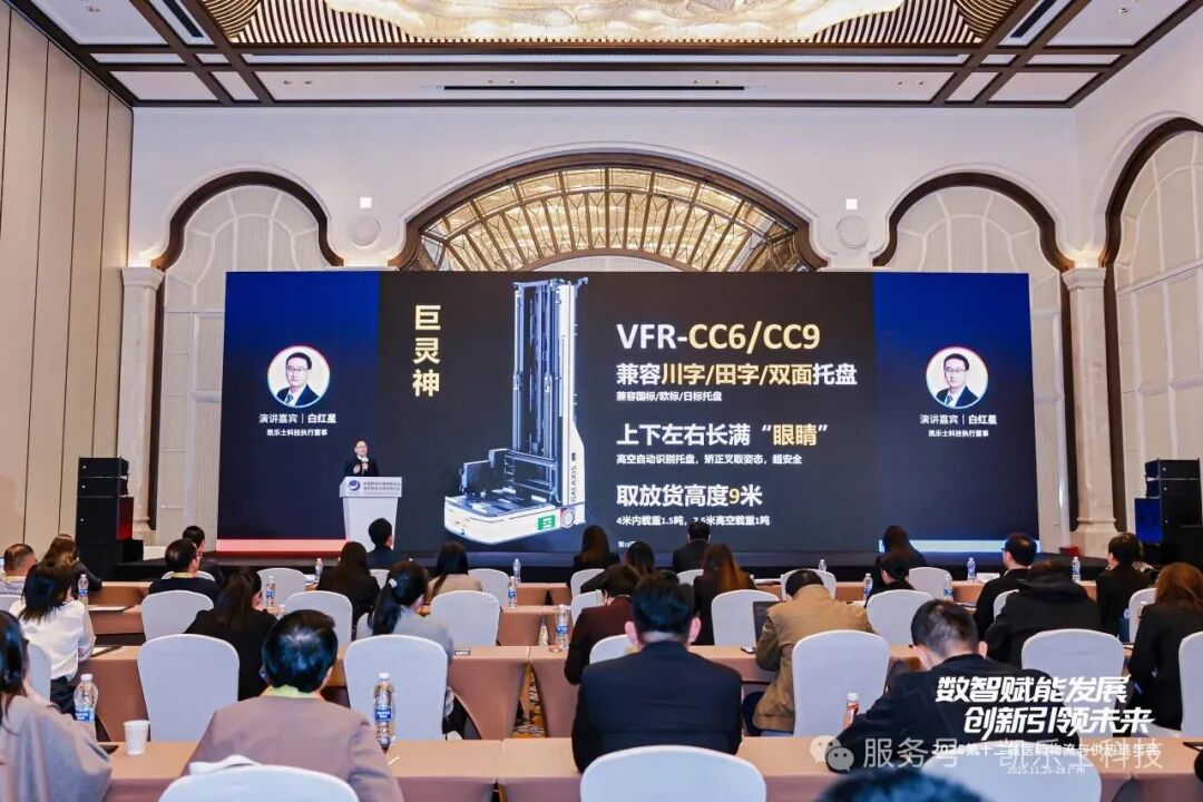 在武汉汽车零部件峰会上,白红星发表主题演讲《破局·增效——VFR极窄巷道叉式移动机器人破解汽车零部件仓储“空间与效率”困局》,直指行业转型痛点。