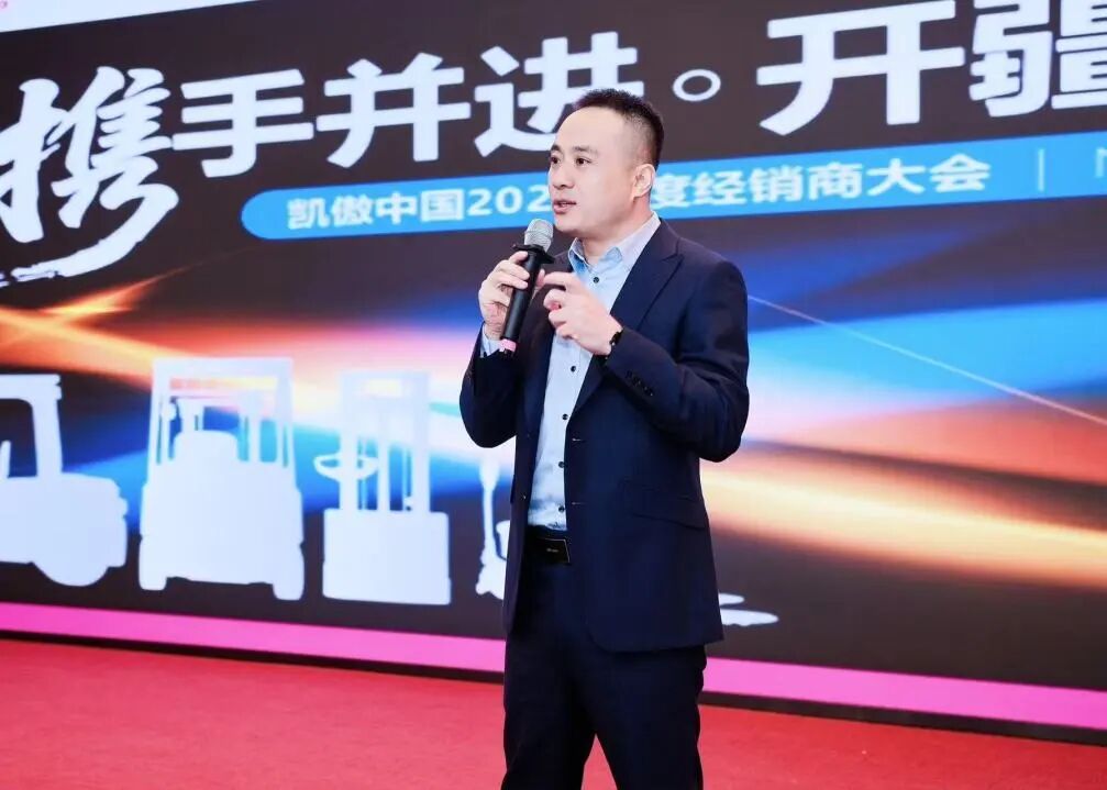 凯傲集团董事兼首席技术官、凯傲亚太区总裁郭进鹏先生在大会致辞中,对经销商伙伴们的辛苦付出和贡献表示了衷心的感谢和认可;并表示,在新的一年,凯傲中国将继续坚定不移地与经销商并肩携手,共同做大做强市场。