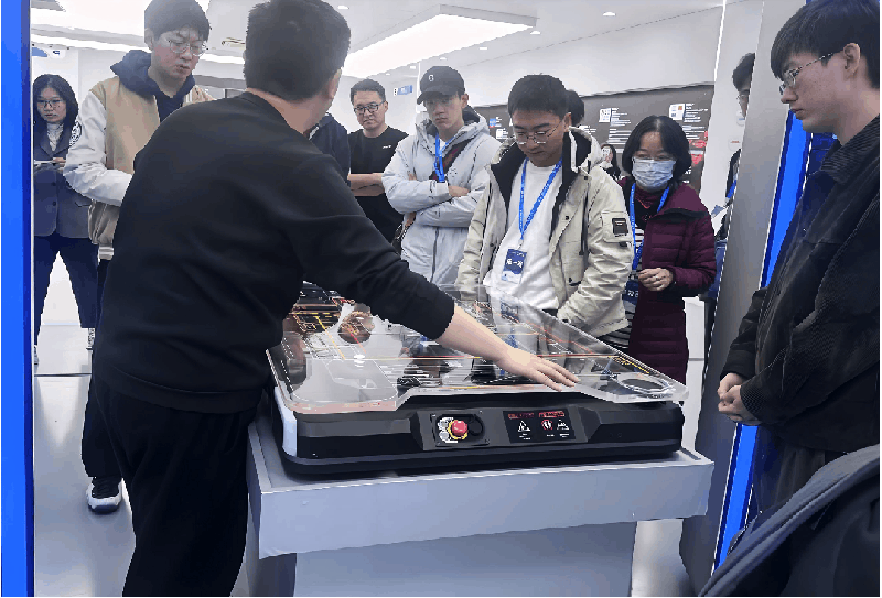 活动伊始,仙工智能联合创始人兼 CEO 赵越在一楼展厅全面介绍了仙工智能平台化建设的成果,以及在汽车、3C、新能源、工程机械等 20+ 行业的一站式解决方案。通过多款机器人动态演示和 3D 软件互动体验,生动呈现了机器人技术在实际场景中的应用,为同学们建立起对产业一线的直观认知。