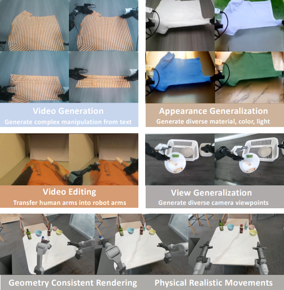 两大模块协同,可输出兼具视觉真实感与物理合理性的完整具身交互数据,为 VLA 模型训练提供了优质 “养料”。