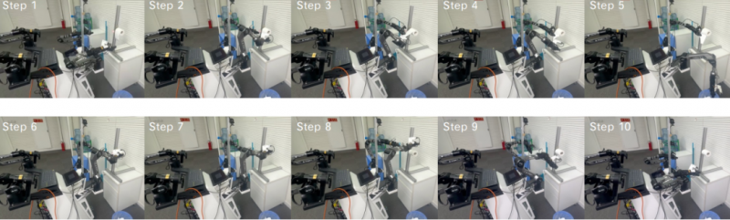 本案例聚焦该工作的真机验证环节:研究团队将完全基于 GigaWorld-0 合成数据训练的 VLA 模型(GigaBrain-0),部署至一个通用双臂灵巧操作平台(如松灵COBOT MAGIC)进行零样本迁移测试,整个训练过程未使用任何真实机器人交互数据。