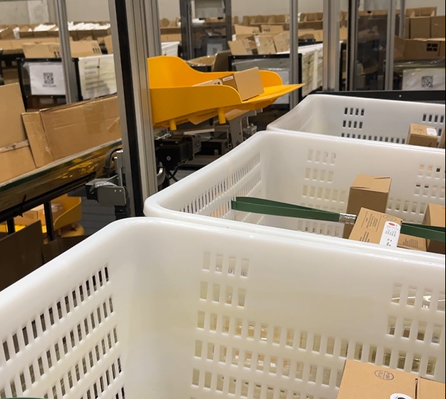 该仓的货况极具代表性:80%的货物是规格相近但SKU繁多的重小货,且常有买家一单订购20-30件的情况。针对这种“重且杂”的特殊需求,我们的系统通过对不同商品件数的订单进行灵活优化,即便单格口承载二三十件货物也不会拥堵。无论是日常分拣还是黑五、圣诞等旺季爆单,系统都能精准适配——这正是立镖柔性分拣方案的核心竞争力。
