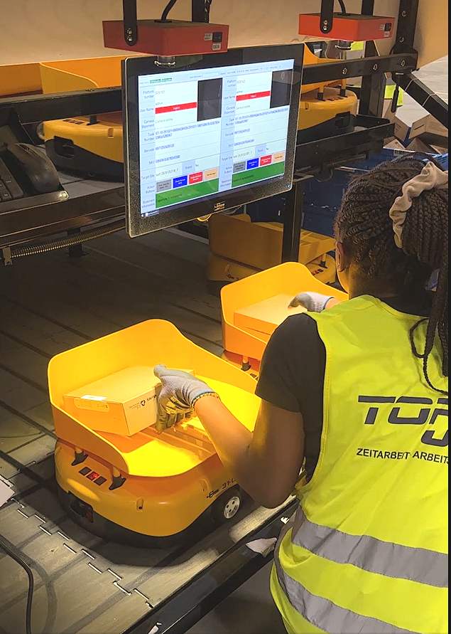 深秋的杜塞尔多夫,午后阳光透过仓库高窗洒下,映照着整齐有序的智能分拣区。正在操作台旁从容巡检的德国跨境仓工作人员笑着说:“以前旺季这时候,仓库里满是堆积的包裹,6-8 个人围着分拣台弯腰忙到直不起腰,人均每小时才 1000 件,还总怕错发漏发。”