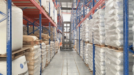原有的地堆式存储导致空间浪费严重,升级为窄巷道货架后,货到货间距1.85m,货架高度8m,共20排货架,巷道深度35m,仓储空间利用率相比之前增加了约70%,爆仓难题轻松解决。