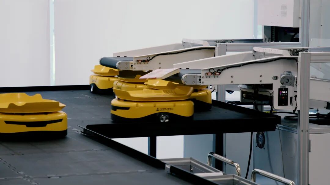 读者把书投进一楼还书口的瞬间,这些精灵似的 “小黄人” 就会悄悄过来,轻轻接住图书,像有了灵性似的认准方向,精准得把图书投到相应的书车。