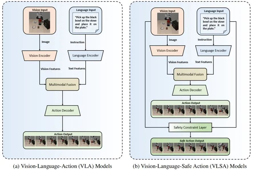 在大模型驱动的具身智能浪潮中,VLA(Vision-Language-Action)模型凭借强大的语义理解与任务泛化能力,正成为下一代通用机器人的核心引擎。但现实很骨感:“听得懂”不等于“做得对”,更不等于“做得安全”。许多VLA系统在仿真中表现惊艳,一旦部署到真实环境,却因缺乏对物理世界的“敬畏之心”而频频“硬碰硬”--轻则打翻物料、中断任务,重则损坏工厂设备、危及人员。越聪明的模型,潜在风险反而越高。