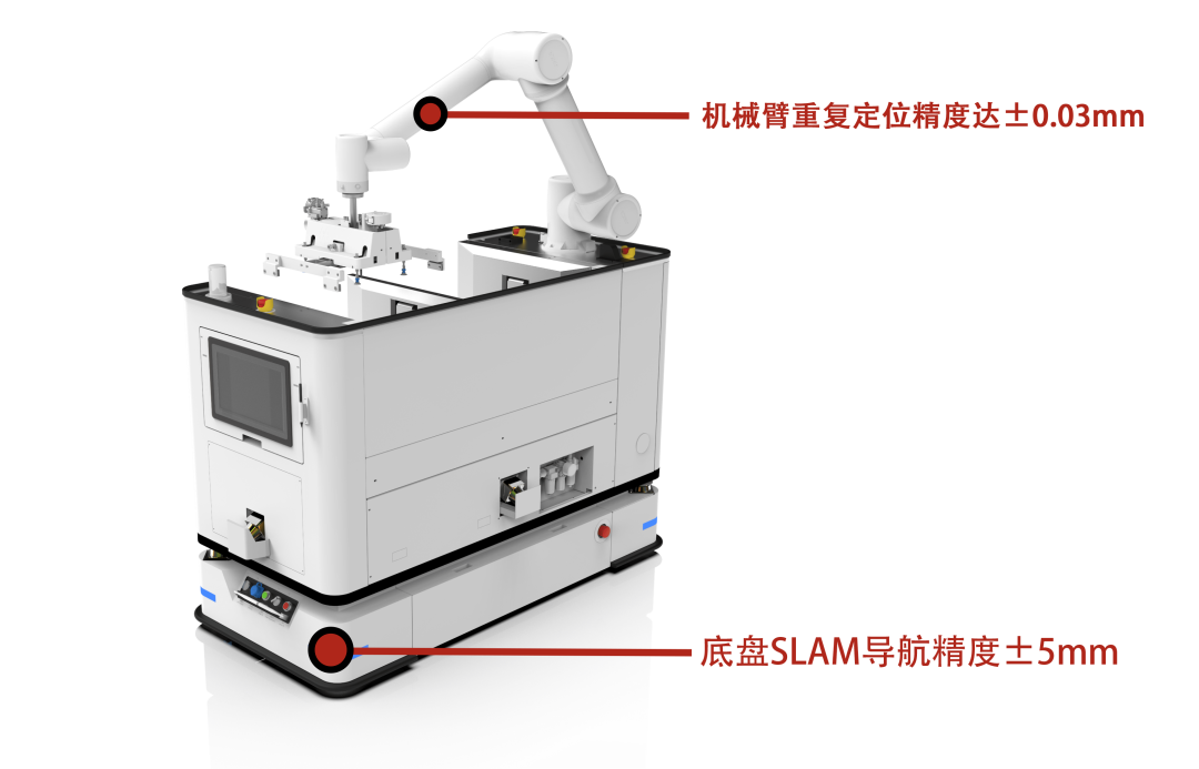 . 超高重复定位精度:机械臂重复定位精度达±0.03mm,底盘SLAM导航精度±5mm,确保每次装夹精准无误,从根源上降低废品率与刀具损耗。