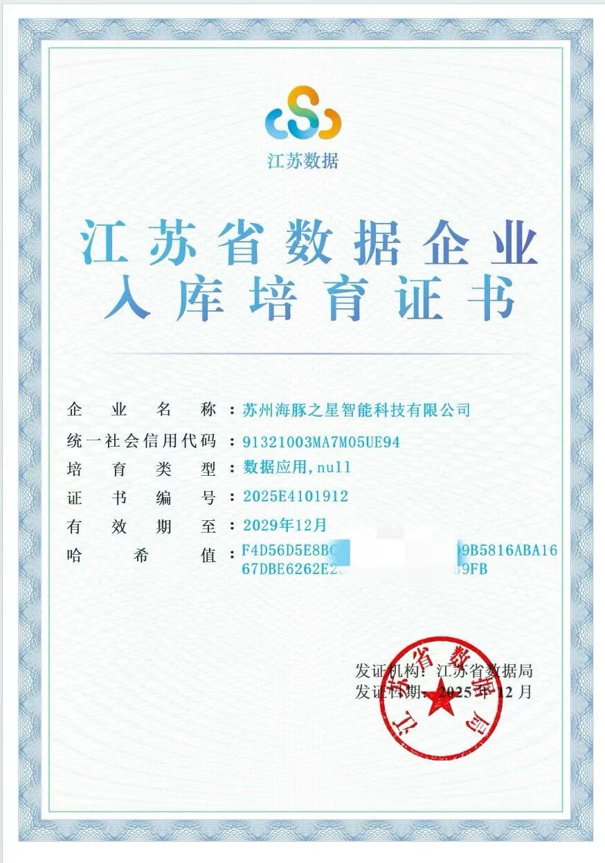近日,省数据局公布江苏省首批入库培育数据企业名单,海豚之星AiTEN凭借在数据领域的技术实力与业务创新,成功入选。