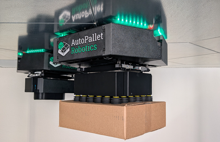“我们最初提出的问题是:‘如果不考虑安装在基座上的机械臂,那么专为箱体搬运而设计的现代化机器人架构会是什么样子?’” AutoPallet Robotics 的联合创始人 Eric Miller 说。“通过将小型高效的机器人安装在天花板上,我们可以在传统自动化解决方案无法应用的地方,为操作人员提供高密度、灵活的分拣和码垛功能。”