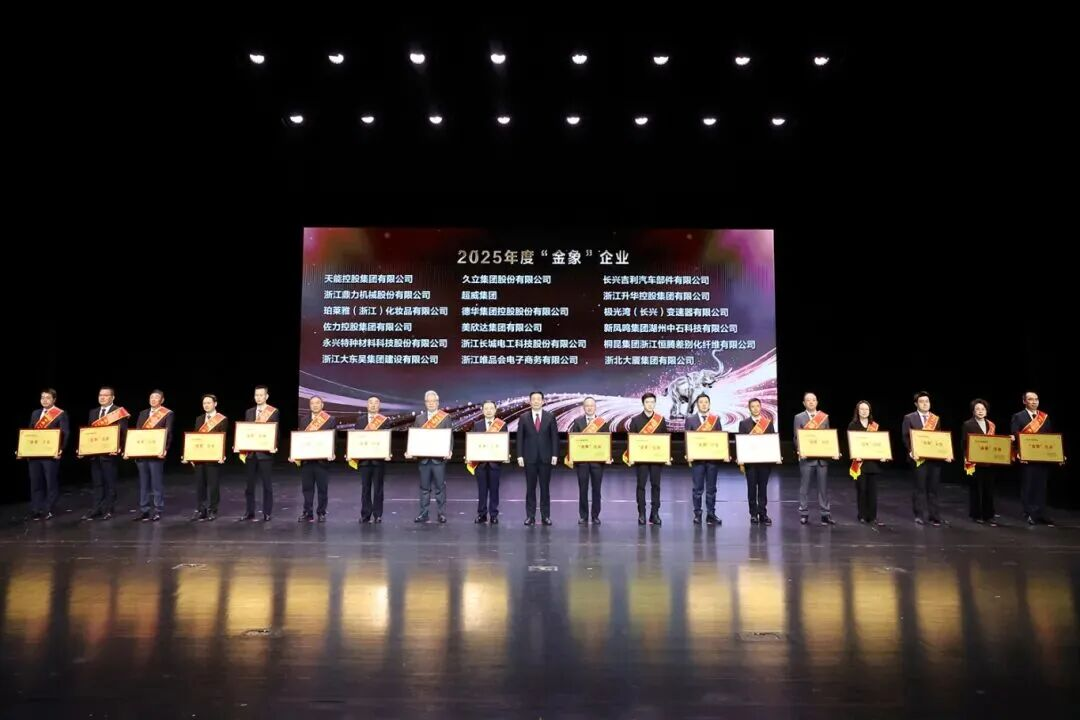2月25日上午,湖州市持续深化“在湖州看见美丽中国”实干争先主题实践推进会在湖州大剧院举行,大会为2025年度“金象”“金牛”企业颁奖。天能集团凭借在经济社会发展中的突出引领、示范和带动作用,连续第11年获得“金象”企业称号,并位居榜首。