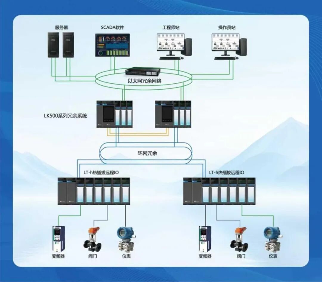 方案采用和利时新一代全国产化LK500系列大型冗余PLC,搭载 HollyControlV4.0国产化SCADA平台,打造覆盖洁净室暖通空调、纯水废水、气体化学品、电力监控、回收循环系统的全生命周期管控体系。支持全方位的冗余控制技术,保障半导体厂务系统稳定可靠运行;控制器与IO模块支持热插拔,程序下载不停机,调试与维护便捷;SCADA软件实现洁净室内温湿度、压力、流量等关键数据监控,提高生产制造良品率。