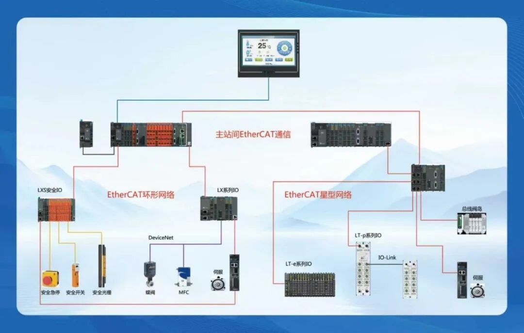 以和利时自主研发的LX-CU500系列运动控制型PLC和LXS安全PLC为核心,搭配DX50系列伺服系统以及安全传感、总线阀岛、高防护IO等产品,同时控制器内置智能温控算法,完全适配半导体前道工艺装备的需求。和利时通过“控制+安全+伺服+IO+软件”全栈自主架构,破解高端装备进口依赖难题,为半导体行业提供定制化控制解决方案,构建自主可控的装备生态。