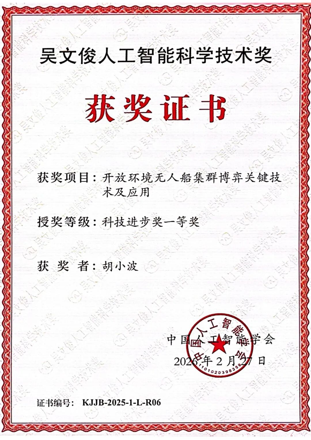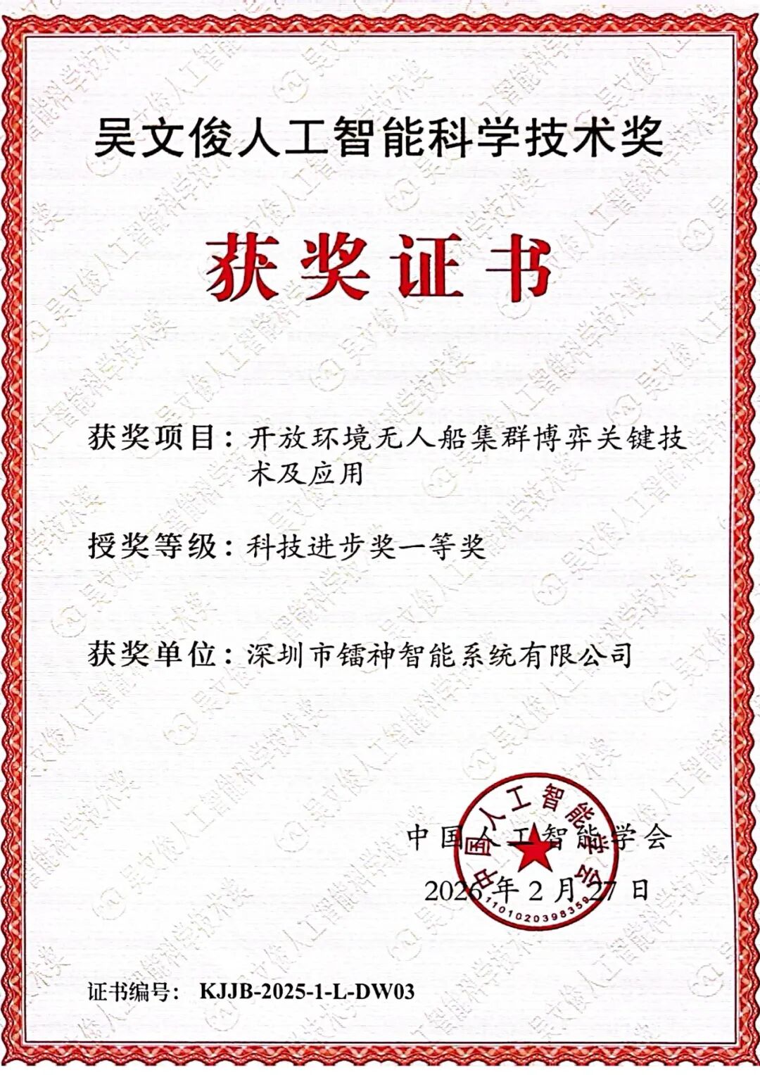 热烈祝贺!深圳市镭神智能系统有限公司凭借「开放环境无人船集群博弈关键技术及应用」项目,荣获2025 年度吴文俊人工智能科技进步奖一等奖!