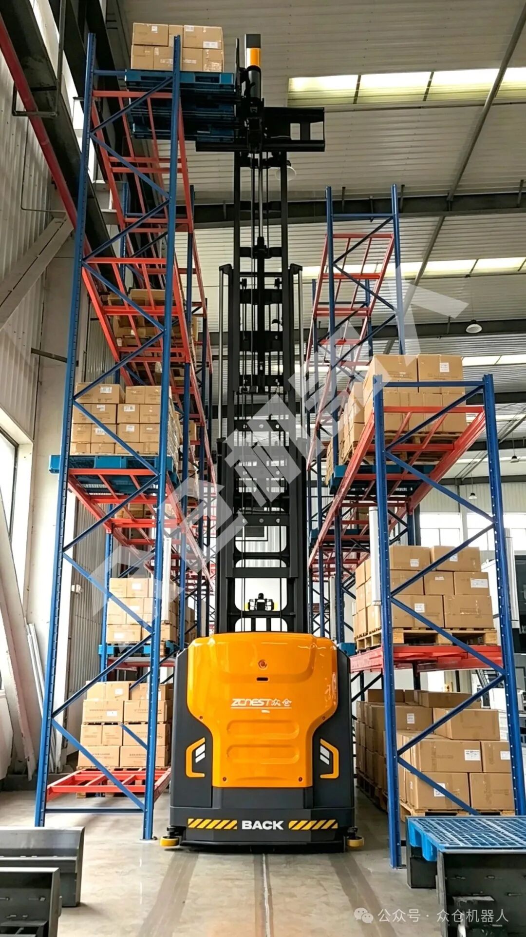 众仓ADV相比传统前移式叉车,存储量提升30%~40%,空间极致利用。支持360°全向行驶,原地旋转、左右平移,能在窄巷道内灵活穿梭,无需转弯即可完成高位取卸。作业精度达±5mm毫米,配合高位防倾倒设计,9米/11米取卸不侧翻、不掉货,高位作业稳固可靠。同时多传感器立体防护,实现7×24小时无人值守,保障人、机、货全程安全可控。此外,该车无损兼容川字托盘、田字托盘、九脚托盘、料笼、长物料等,轻松适配高位密集库、长物料堆垛等复杂场景。相关资讯