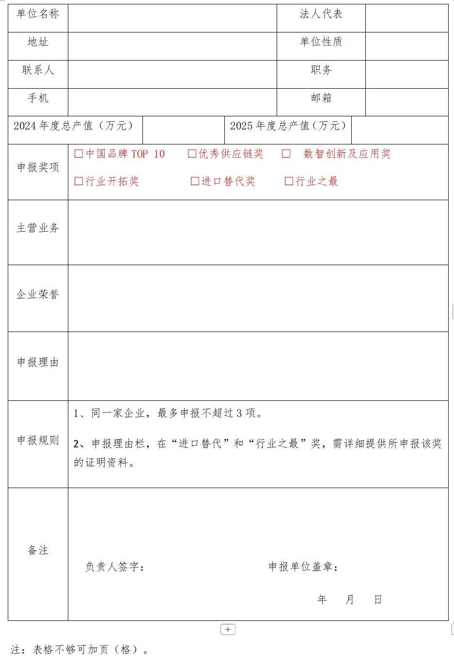 2、“进口替代奖”与“行业之最”必须附详细证明资料,否则视为无效申报。